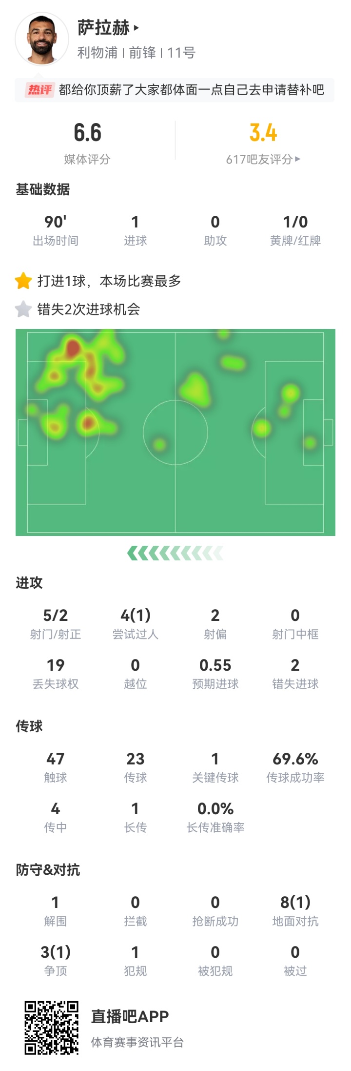 得分 也被批!萨拉赫被球迷打3.4分:杰队都能后备 ,为什么你不行?
