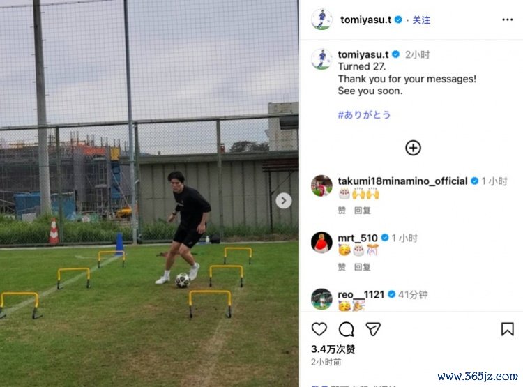 富安健洋写道:“27岁了。感谢各位的祝福!我们很快就会再见。”